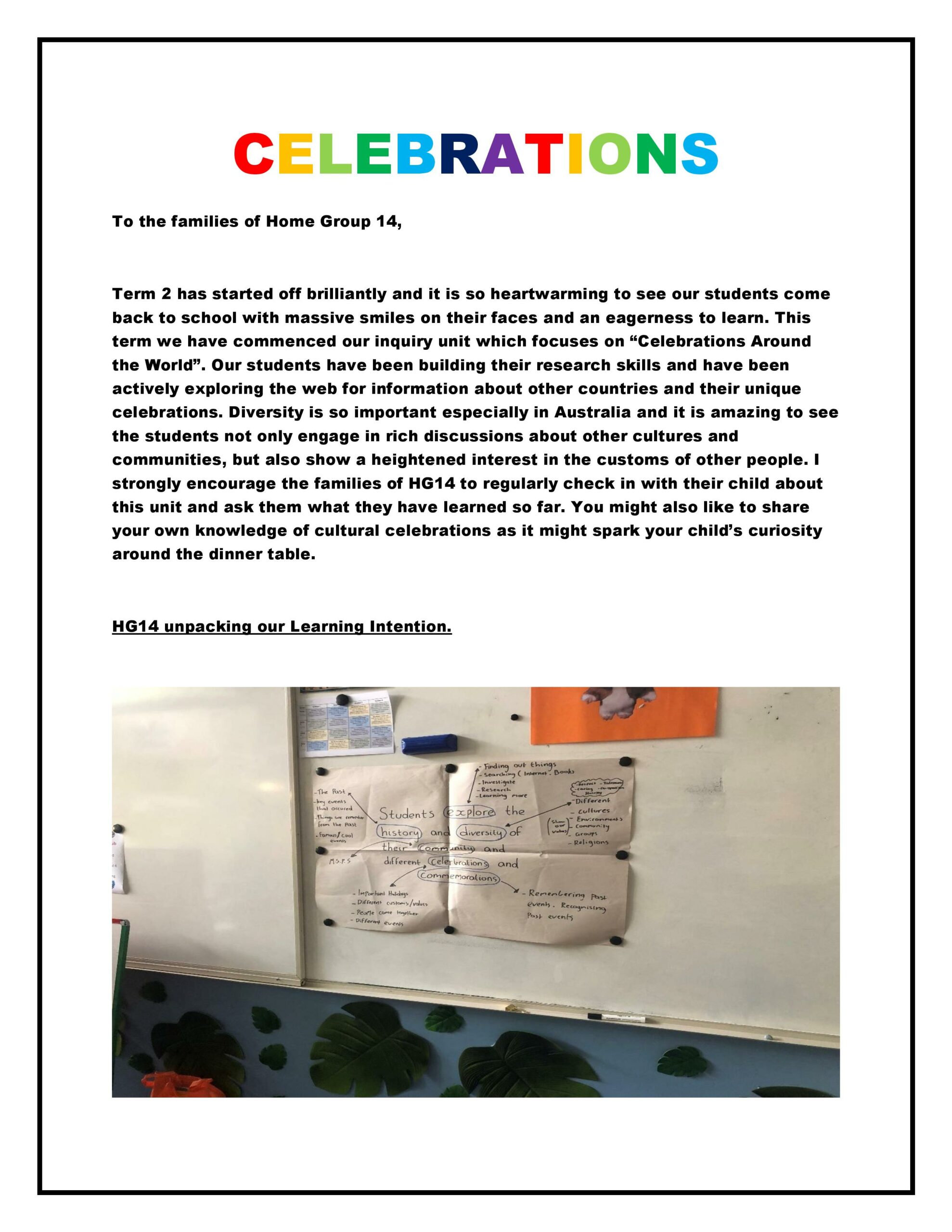 Home Group 14 – Celebrations By Jane Brayshaw|2021-06-23T13:15:22+10:00May 3rd, 2021|Home Group Happenings|Comments Off on Home Group 14 – Celebrations Share This Story, Choose Your Platform! FacebookTwitterRedditLinkedInWhatsAppTumblrPinterestVkEmail About the Author: Jane Brayshaw Related Posts Gardening Club Happenings – Term 2, 2021 Gardening Club Happenings – Term 2, 2021 Home Group 5 – Lots of Learning!! Home Group 5 – Lots of Learning!! Home Group 24 – Healthy Me! Home Group 24 – Healthy Me! Home Group 1 – If the World Was A Village Home Group 1 – If the World Was A Village Home Group 15 – Robotics Home Group 15 – Robotics